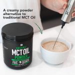 O MCT óleo tem sabor neutro e pode ser adicionado a qualquer bebida, incluindo café e shakes de proteína! O pó se mistura facilmente e é conveniente para viajar ou para sua ida à academia ou como um revigorante à tarde.
