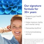 Fórmula patenteada com 18 extratos: mirtilo, semente de uva, shiitake, alho, goldenseal, lavanda, orégano, cardo mariano, equinácea, tea tree, noni, genciana, framboesa, entre outros