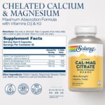 Cal-Mag 2:1 com vitamina D3 e K2, Solaray, 180 cápsulas