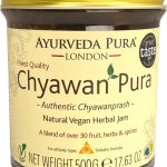 Chyawanprash (também conhecido como Chavanprash e Chyavanprash) é uma geléia natural feita de Amla (groselha indiana) e ervas. Mais de 30 ingredientes totalmente naturais, incluindo: Emblica officinalis, Phaseolus trilobus, Teramnus labialis, Pistacia wholerima, Phyllanthus niruri, Terminalia chebula, Tinospora cordifobia, Glycyrrhiza glabra, Dioscorea bulbifera. Vegetariano, vegano, sem sabores artificiais, sem conservantes artificiais.