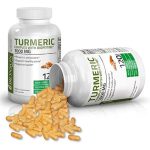 Comprimidos de complexo de cúrcuma de alta potência aprimorados com bioperina: a fórmula de cúrcuma de Bronson possui 1000mg de mistura de complexo de cúrcuma com 95% de curcuminóides padronizados e BioPerine (pimenta preta, curcumina com pimenta preta) auxiliando na absorção e biodisponibilidade aprimoradas.