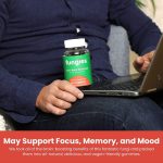 Gomas de Cogumelos Juba de Leão é um estimulante para o Cérebro que promove foco, memória e humor com sabor Natural de Baga, Sem Gelatina, Sem Glúten, Sem OGM, Vegano.