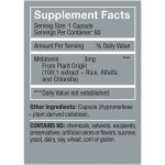 Ingredientes: Melatonina (100: 1 Oryza Sativa, Medicago sativa & Chlorella pyrenoidosa - Folhas e Caules), Cápsula - Hipromelose (Celulose derivada de planta)
