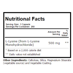 Tome duas cápsulas por dia, entre as refeições. Cada FRASCO de L-lisina contém 270 cápsulas vegetarianas, que deve durar cerca de quatro meses e meio.