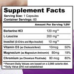 Berberina, Leucina, Inositol, Magnésio, Cromo e Vitamina D.