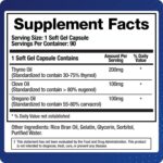 As cápsulas de gel macio contêm extratos de óleo de cravo, orégano e tomilho. Cada um deles é conhecido - há séculos - por conter propriedades supressivas poderosas que promovem o reequilíbrio intestinal.