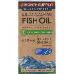 Óleo de Peixe Selvagem do Alasca, Fácil de Engolir - Wiley's Finest, 180 Cápsulas Gelatinosas