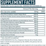 - Força máxima. Fortificado com 22mg de zinco (200% DV), 300mg de Maca e 100mg de Saw Palmetto. Este sistema completo de apoio à saúde masculina.