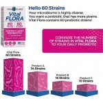 A Flora Vital contém múltiplas cepas de probiótico Lacto e Bifido para espelhar mais de perto a diversidade natural do intestino humano.