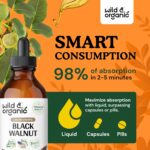 Tintura de nogueira preta orgânica, Extrato de casca de noz preta sem álcool para limpeza de desintoxicação intestinal, 60ml
