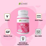 Vitamina B12 é uma vitamina de derretimento rápido, um suporte para energia, memória e humor, veganas, sem açúcar, sabor natural de cereja, comprimidos de rápida dissolução.
