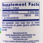 - Vitamina D3, Life Extension, 1.000 IU, 250 Capsules Essencial para manter o crescimento saudável do osso e a densidade;